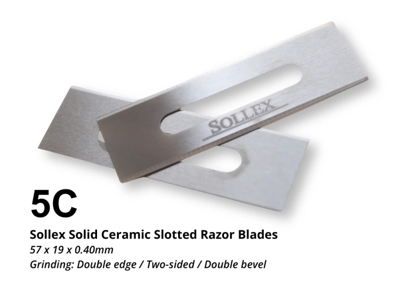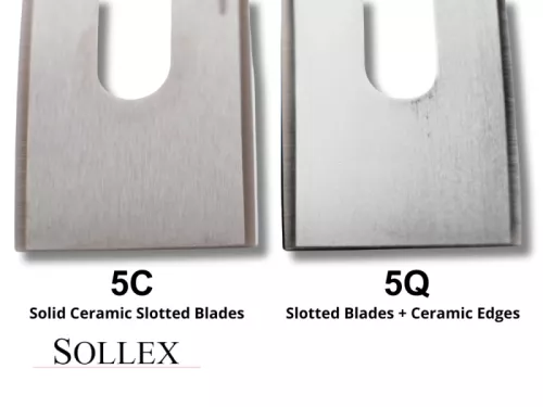 The main feature of the 5c blade is that when this Sollex ceramic slitter blade is used to cut abrasive materials, it sharpens itself and becomes even sharper, rather than becoming dull like other razor blades. This results in cleaner slit edges, longer blade life, and more predictable production runs.