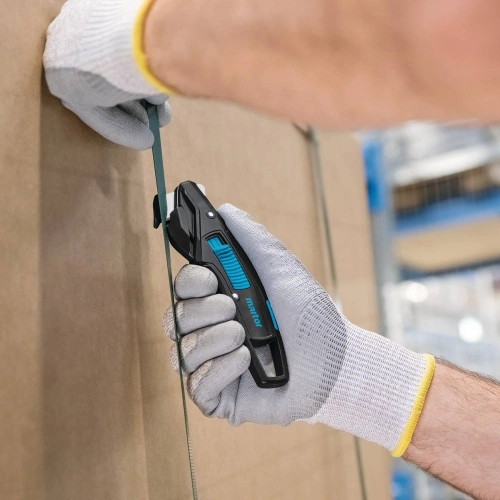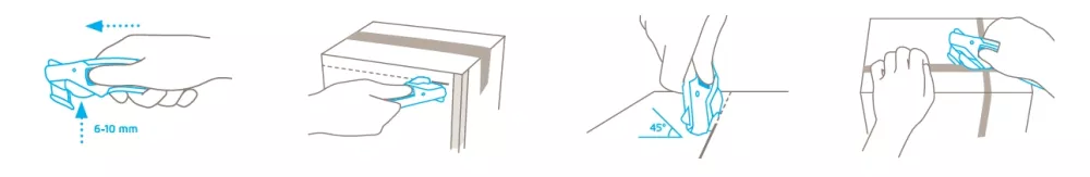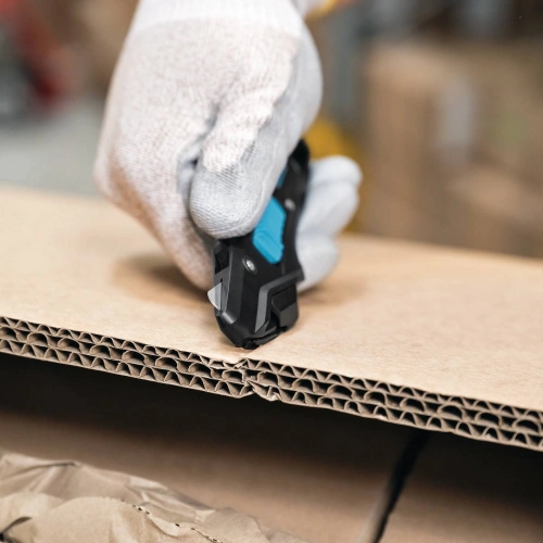 Contrairement aux couteaux de sécurité conventionnels limités à des profondeurs de coupe faibles, le SECUMAX 370 permet d'étendre la profondeur de coupe de 6 mm à 10 mm à l'aide d'un curseur double face. Cela en fait une solution efficace pour les environnements d'emballage, de logistique et d'entreposage où des matériaux plus épais sont régulièrement manipulés. La conception de la lame dissimulée garantit que le tranchant n'entre jamais en contact direct avec l'utilisateur ou les marchandises emballées.